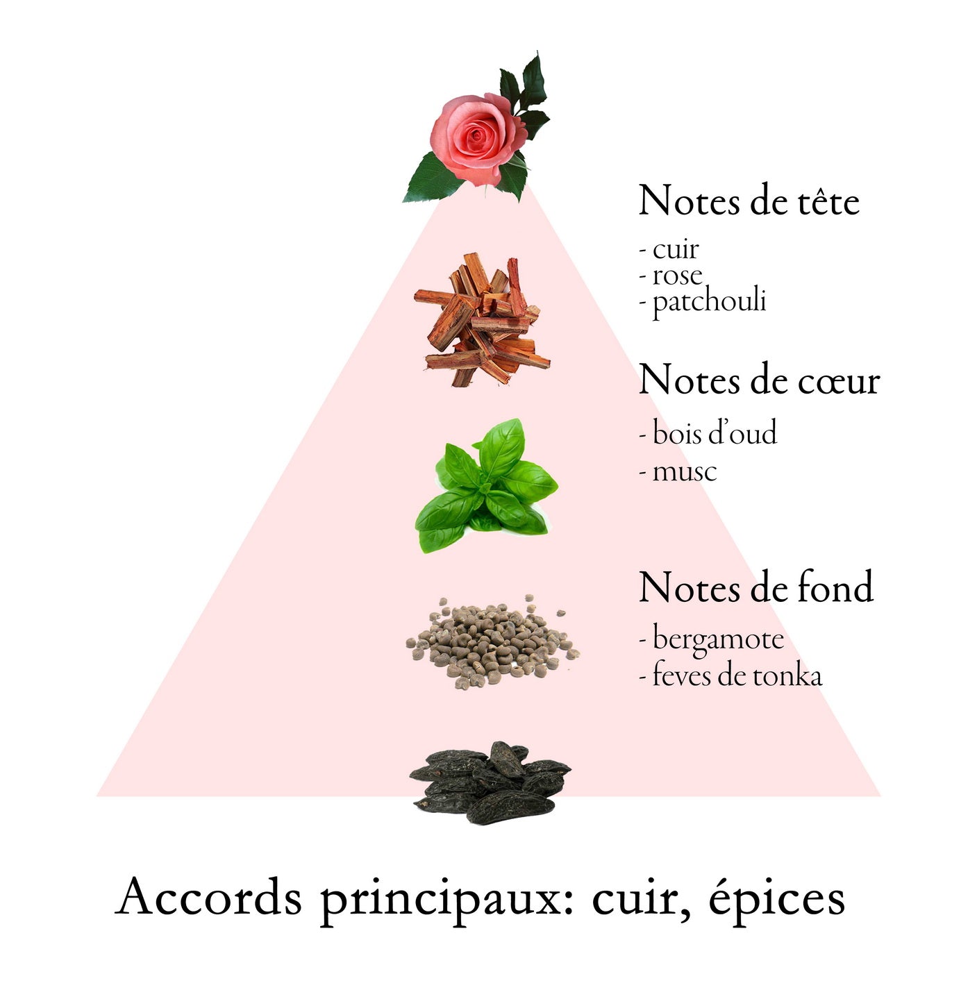 Noir 67 est un parfum riche et sophistiqué pour hommes. Des notes lumineuses de bois et de musc vous plongent dès la première seconde dans l'atmosphère solaire de l'Orient. Et les notes sensuelles du oud vous surprendront par un charme incroyable mais tellement tangible. Une bouteille design dans un coffret cadeau sera un cadeau idéal pour les hommes. Chaque flacon possède un numéro unique et un certificat, vous pouvez donc être sûr de détenir un parfum exclusif.