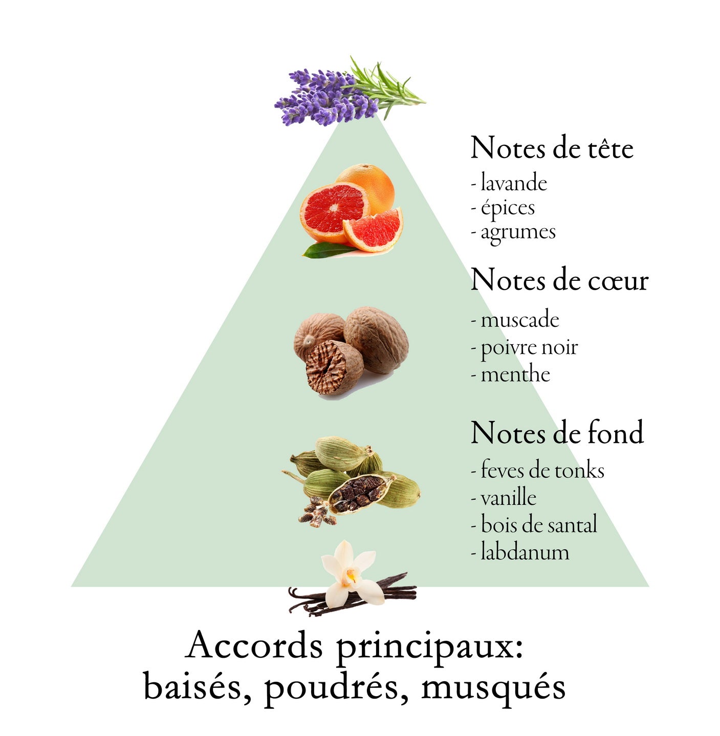 Notes de cœur : muscade, poivre noir, menthe.