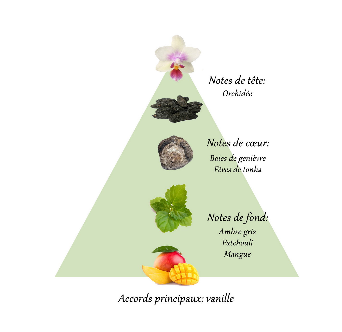 The aroma will envelop you with notes of orchids, which in a moment balance juniper and tonka beans. The taste of amber, patchouli and mango is felt at the end. Perfumes embody femininity, sophistication and drive