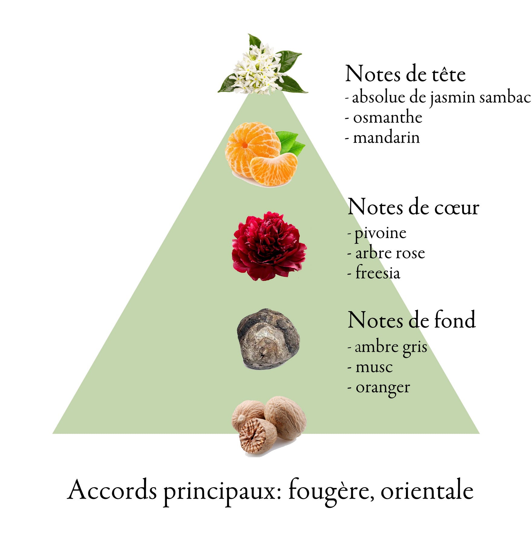 Fragrance group: aromatic, oriental Top notes: jasmine, osmathus, mandarine.