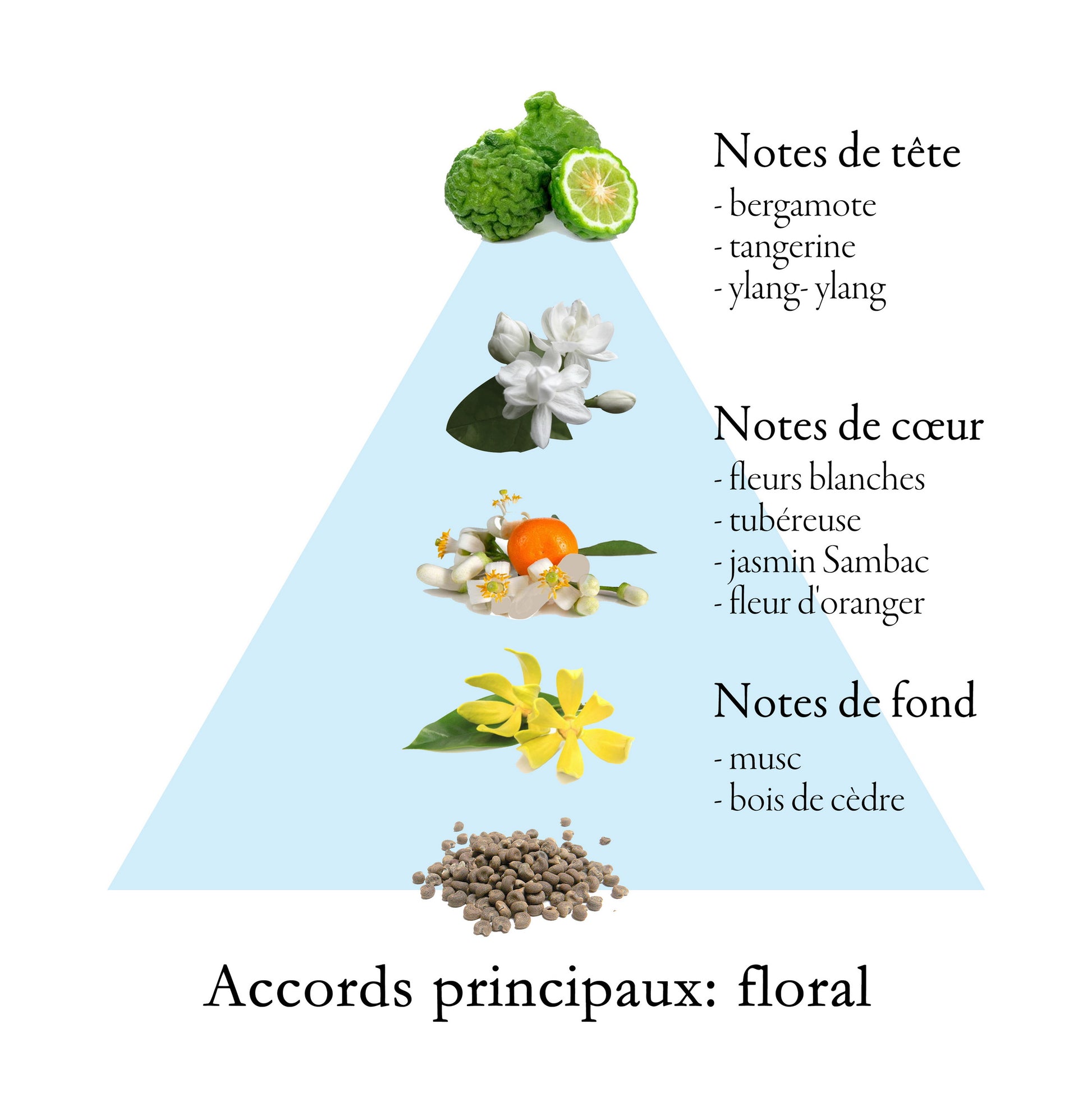 Heart notes: white flowers, tuberose, sambac jasmine, orange blossom.