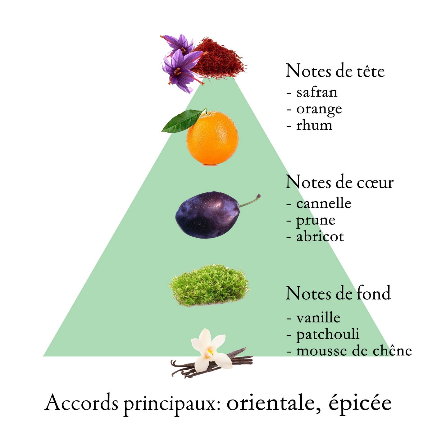 Fragrance group: spicy, oriental Top notes: saffron, orange, rum.