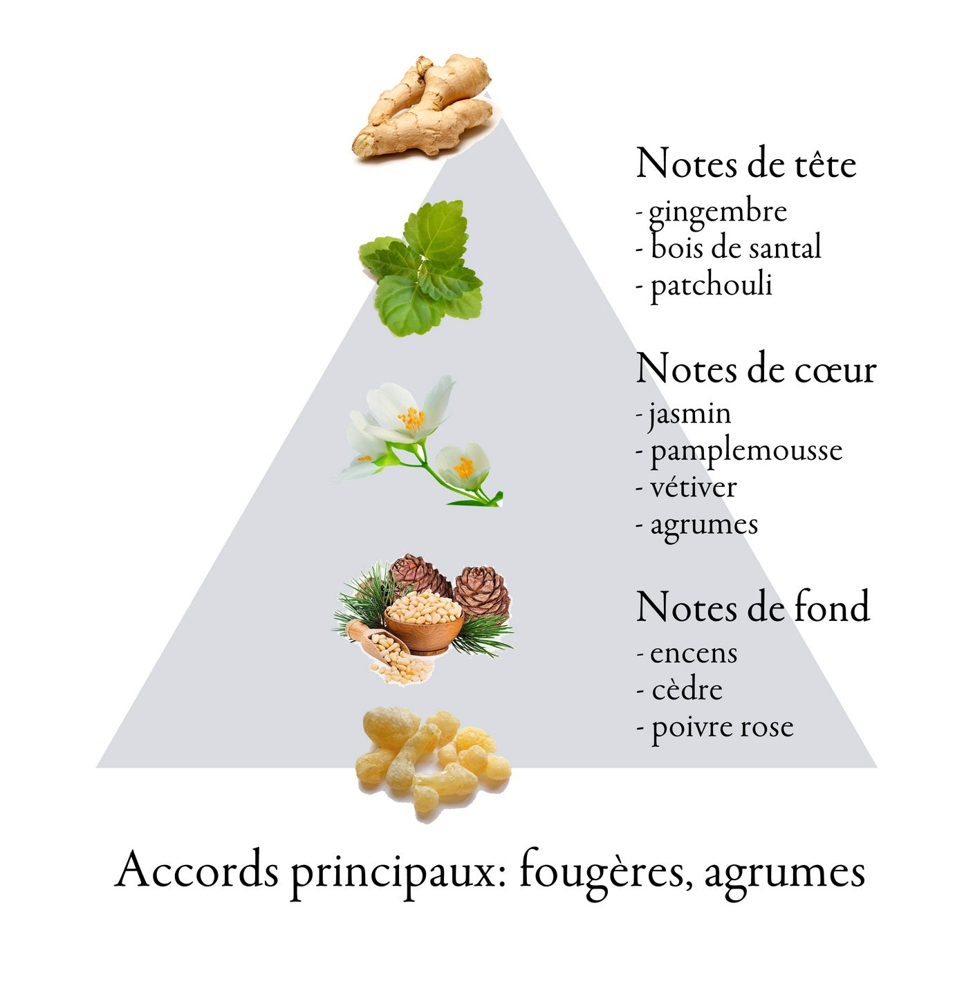 Top notes: labdanum, ginger, sandalwood, patchouli.