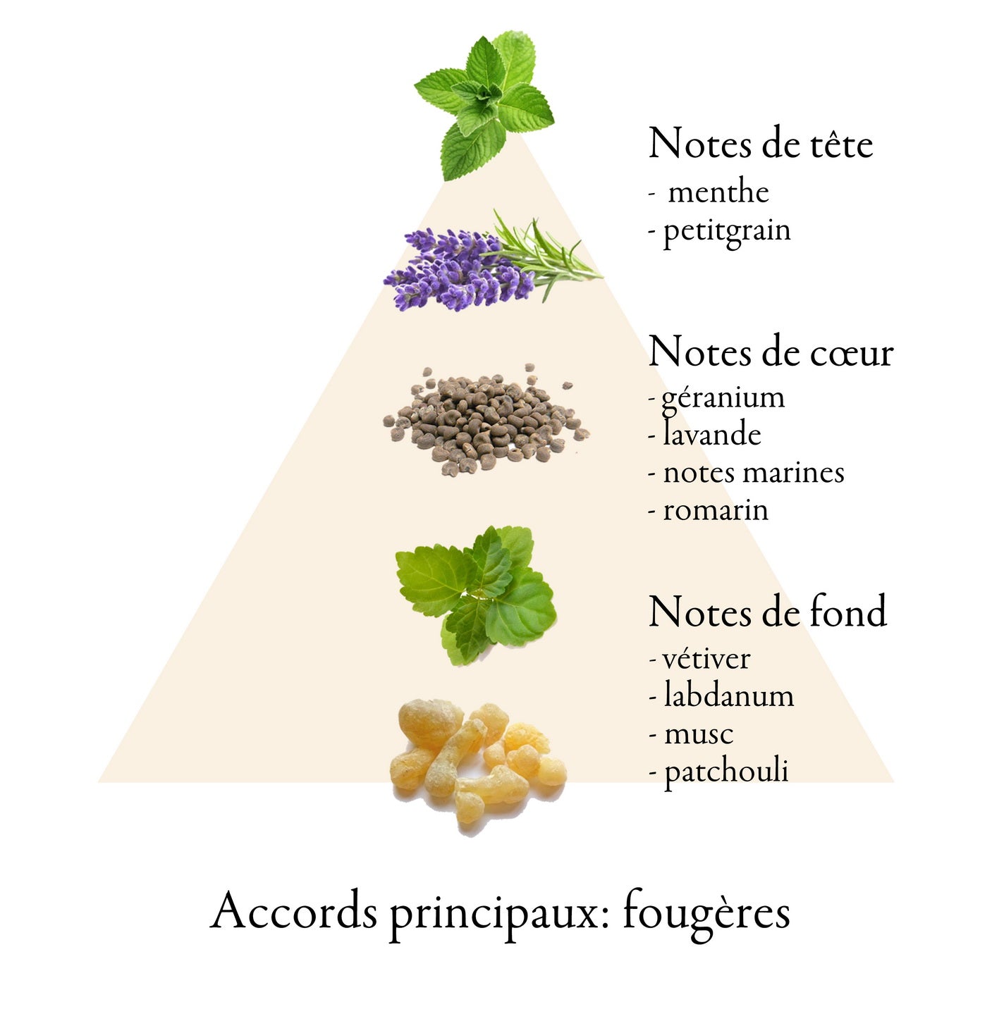 Heart notes: geranium, lavender, sea notes, rosemary.